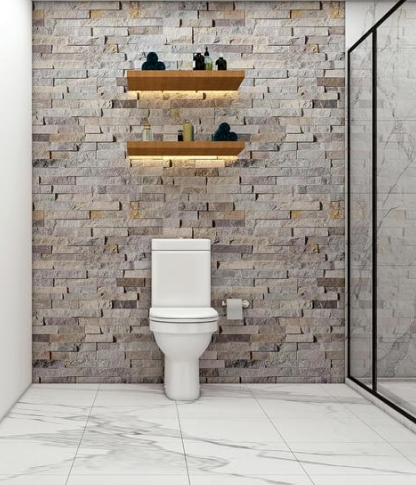Los formatos rectificados y porcelánicos efecto mármol o cemento están entre los más demandados. Además, funcionan especialmente bien en baños pequeños, ya que visualmente amplían el espacio.